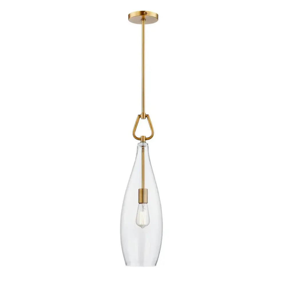 An elongated oval glass shade hangs elegantly from an interlocking metal rod, attached by a keyhole design for a sleek, clean look. Available in various sizes and glass shapes as our Lane and Blake Pendants. Becca shines beautifully above a dining table, clustered over a kitchen island, or even replacing bedside table lamps. This minimalist, modern design proves that simplicity makes the boldest statement.