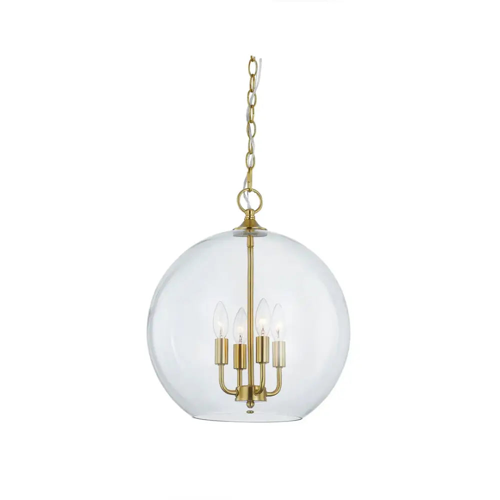 The Blaine Pendant embodies a minimalist design with maximum versatility. Crafted from brass-finished metal, its clear glass globe shade showcases a clean, contemporary silhouette while housing four bulbs for ample illumination. The open-bottom design makes bulb changes and cleaning effortless. With its timeless appeal, Blaine seamlessly complements mid-century, minimalist, and contemporary spaces, fitting effortlessly into any color palette.