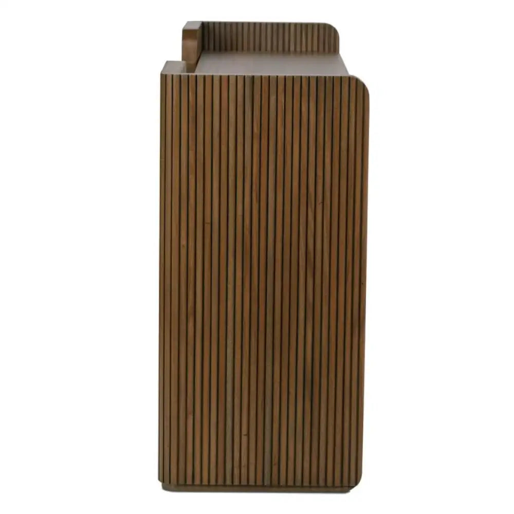 The Kindred Console Table masterfully balances architectural elegance with modern functionality through its striking reeded surface detail - a design element that adds sophisticated visual rhythm while paying homage to classic architectural forms. Available in rich Godiva or light Sesame finishes on premium solid mahogany, this versatile piece features clean lines accented by gentle curves at the sides and thoughtfully detailed bottom trim that speaks to meticulous craftsmanship. The table's generous proportions and dual-shelf design offer both display space and practical storage, while its refined silhouette allows it to serve as either a graceful anchor piece in an entryway or a sophisticated media console in a living space. Whether styled with curated objects d'art, family photographs, or essential electronics, this console's timeless design and quality construction ensure it will remain a cherished piece that elevates any interior story.