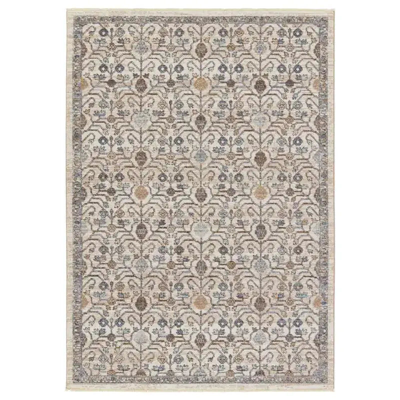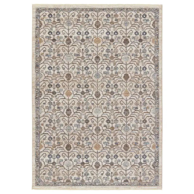 Inspired by the distressed perfection of antique textiles, the Lark collection is warm and inviting with rich, updated hues. The updated traditional Primrose area rug showcases an intricate, floral trellis design paired with short, cream fringe. The flower details spring to life in hues of blue, gold, brown, cream, and taupe. This indoor rug thrives in high and low trafficked areas of the home such as living rooms, halls, entryways, bedrooms, and dining areas.