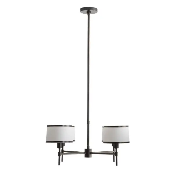 Harnessing traditional elements, the Luciano is a modern classic. An bronze steel candelabra-style frame presents four lights, each topped with a white linen shade with a matching bronze band that trims the tops and bottoms of each shade. Additional pipe available (PIPE-487). Certified for damp locations and intended for interior use