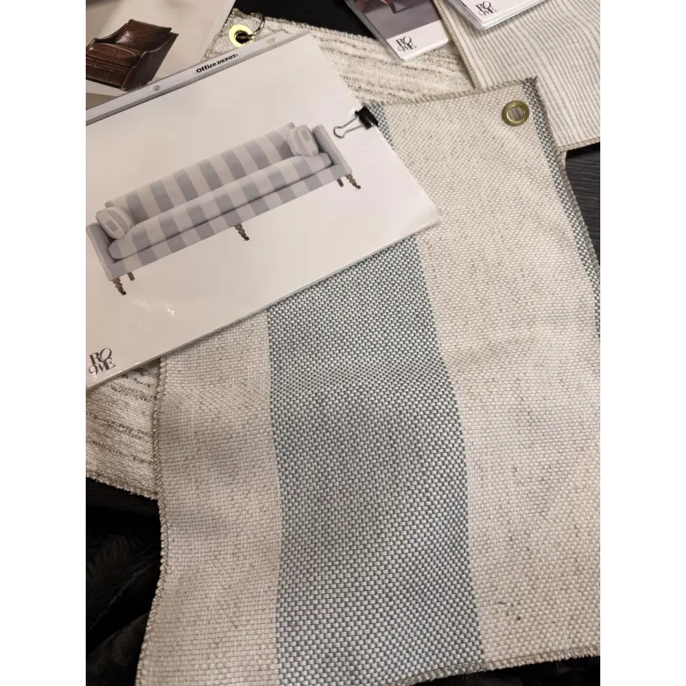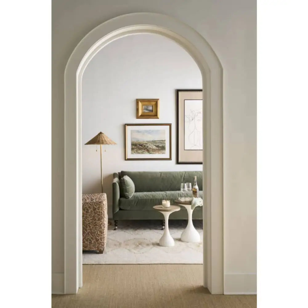 The stock Madeline sofa in covered in the stripe fabric not the green velvet.